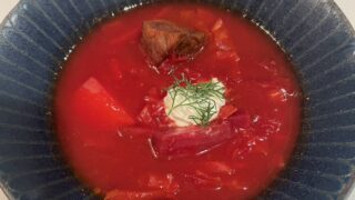 ビーツを使ったレシピ、ボルシチの作り方を説明してるよ